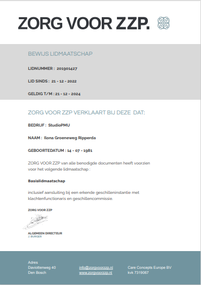 1.1 STUDIO PERMANENTE MAKE UP: eenmanszaak, gevestigd te GOOR aan de Potgieterstraat 6 , 7471 ZN.